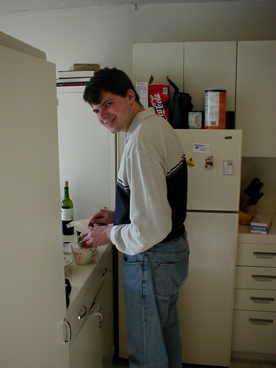 Me in the kitchen at Abby's "cube" apartment